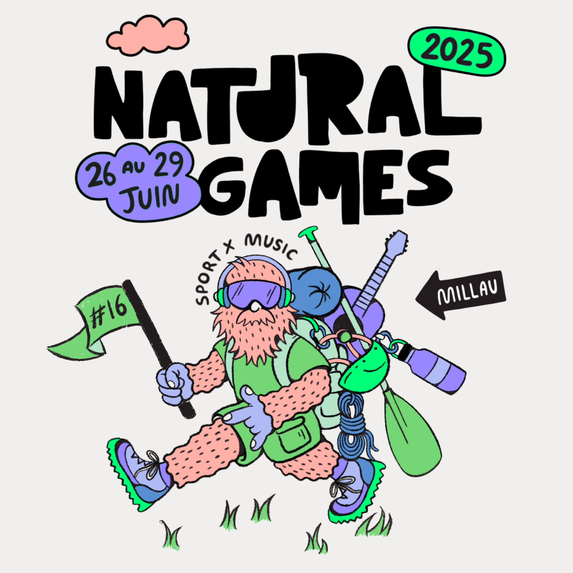 J’ai donc eu la mission de créer, pour deux éditions, l’affiche qui saurait incarner la double essence du festival : la fusion des sports de plein air et de la culture musicale.
